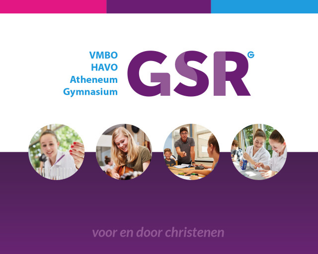 Voor de GSR met vestigingen in Rotterdam en Rijswijk een nieuwe huisstijl mogen ontwikkelen. Deze huisstijl sluit aan bij de brede christelijke doelgroep die deze middelbare school aanspreekt.