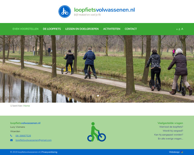In opdracht van een oefentherapeute cesar hebben we een website gemaakt voor mensen die beperkt zijn in lopen. Het is effectief gebleken een aantal keer te oefenen met een loopfiets onder professionele begeleiding. Het oefenen richt zich met name op de techniek, de controle over de loopfiets, de balans en de trainingsopbouw.