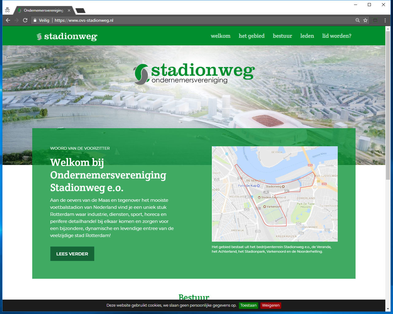 Aan de oevers van de Maas en tegenover het mooiste voetbalstadion van Nederland vind je een uniek stuk Rotterdam waar industrie, diensten, sport, horeca en perifere detailhandel bij elkaar komen en zorgen voor een bijzondere, dynamische en levendige entree van de veelzijdige stad Rotterdam!