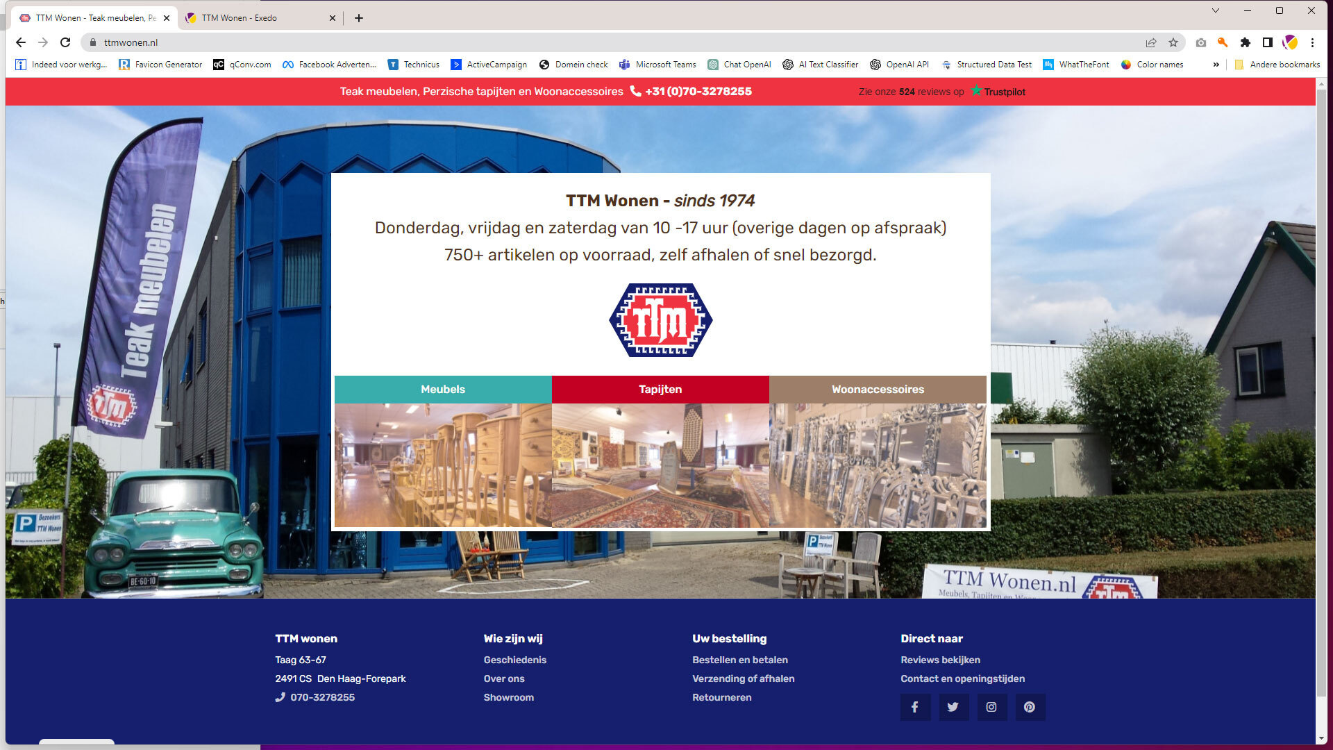 Zeer groot assortiment meubelen, tapijten en woonaccessoires. U kunt terecht in de showroom in Den Haag en de vernieuwde website met meer dan 600 artikelen.